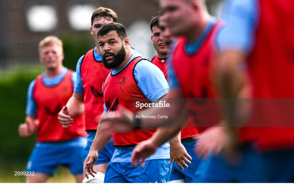 31 July 2024; Assistant coach Tyler Bleyendaal during a Leinster rugby training session at UCD in Dublin. Photo by Ramsey Cardy/Sportsfile
