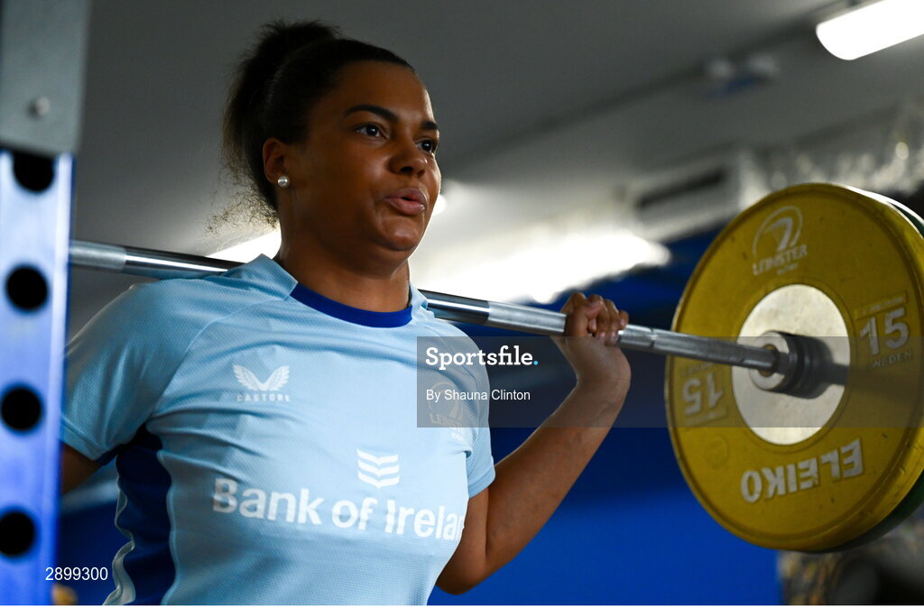 30 July 2024; Eimear Corri during Leinster rugby women's season launch at Energia Park in Dublin. Photo by Shauna Clinton/Sportsfile