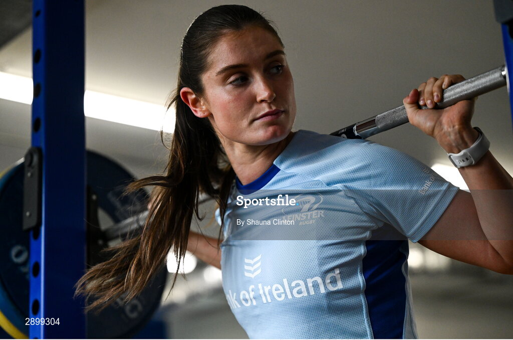 30 July 2024; Ella Roberts during Leinster rugby women's season launch at Energia Park in Dublin. Photo by Shauna Clinton/Sportsfile