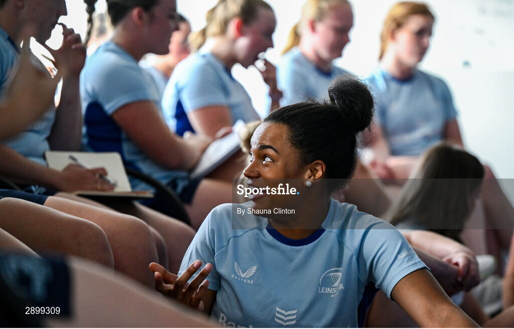 30 July 2024; Eimear Corri during Leinster rugby women's season launch at Energia Park in Dublin. Photo by Shauna Clinton/Sportsfile