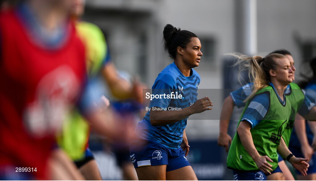 30 July 2024; Eimear Corri during Leinster rugby women's season launch at Energia Park in Dublin. Photo by Shauna Clinton/Sportsfile