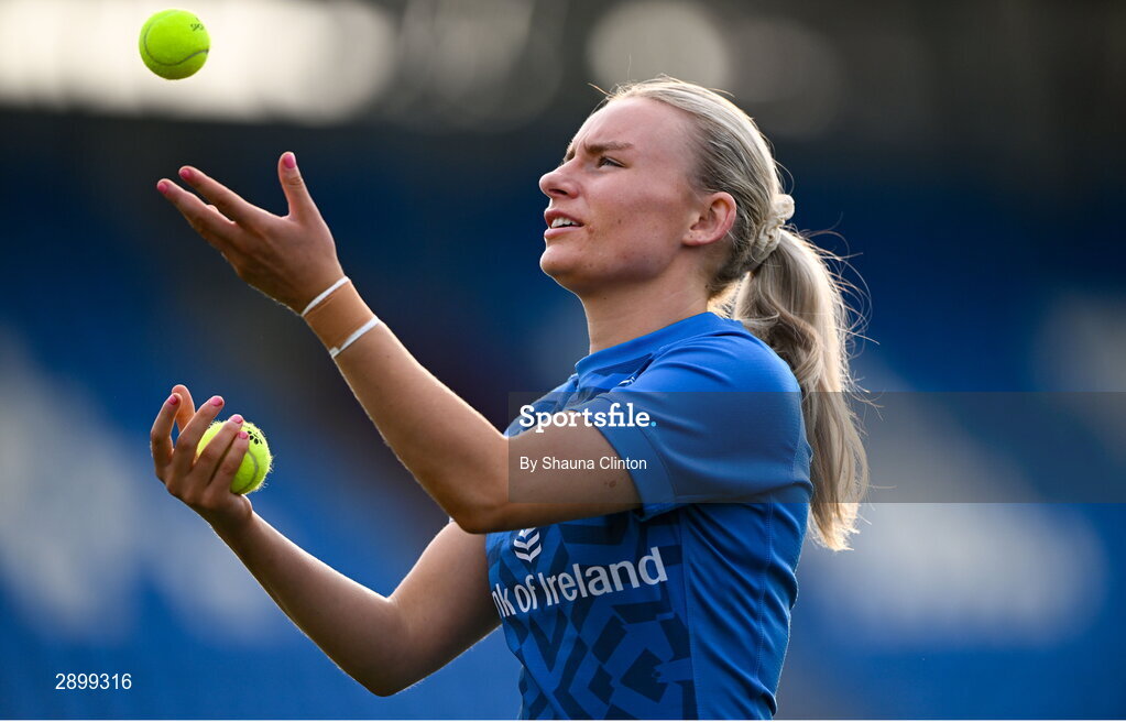 30 July 2024; Emma Tilly during Leinster rugby women's season launch at Energia Park in Dublin. Photo by Shauna Clinton/Sportsfile