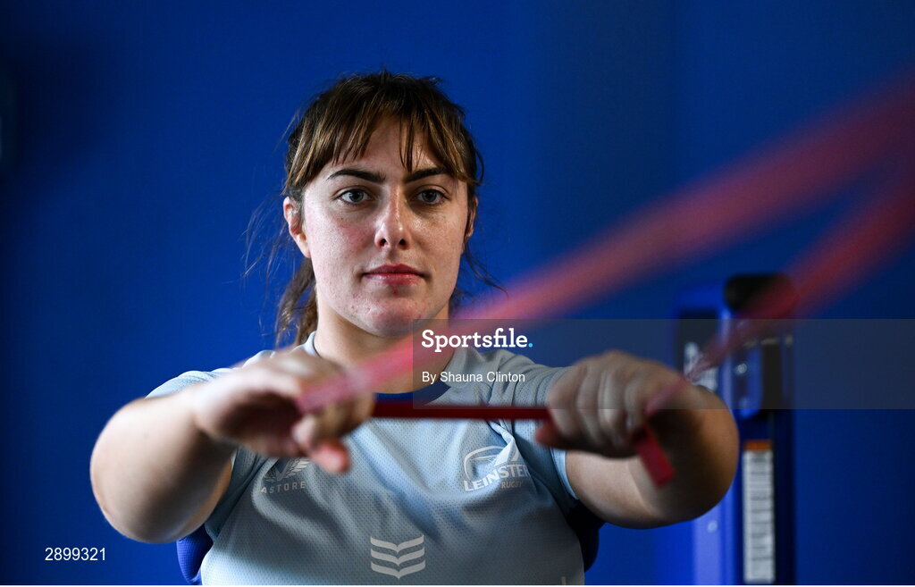 30 July 2024; Julia O'Connor during Leinster rugby women's season launch at Energia Park in Dublin. Photo by Shauna Clinton/Sportsfile