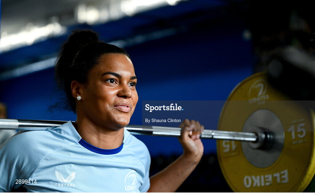 30 July 2024; Eimear Corri during Leinster rugby women's season launch at Energia Park in Dublin. Photo by Shauna Clinton/Sportsfile