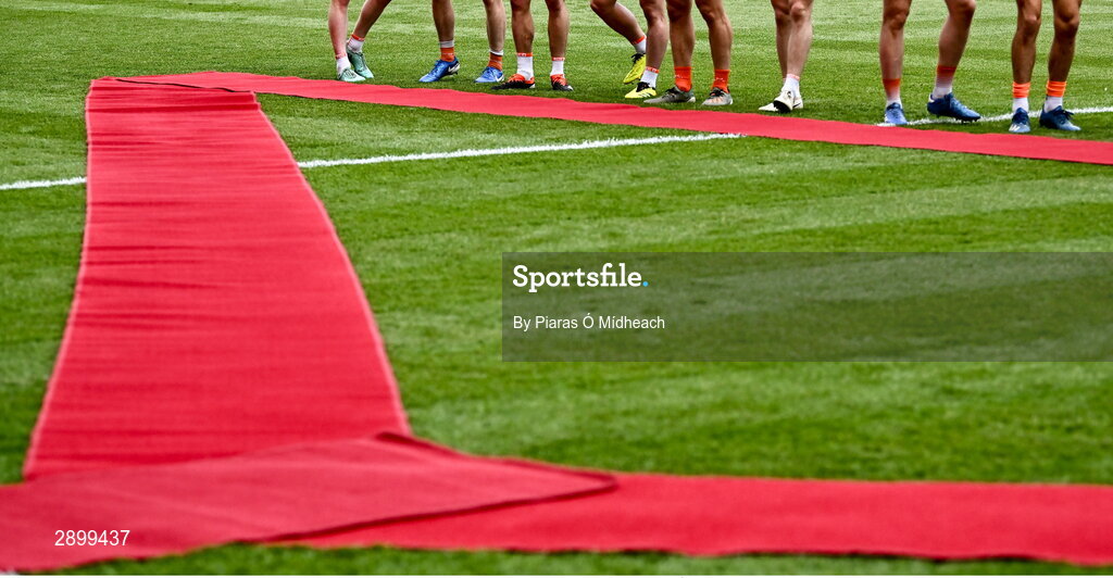 28 July 2024; The socks and boots of Armagh players at the red carpet to meet President of Ireland Michael D Higgins before the GAA Football All-Ireland Senior Championship Final match between Armagh and Galway at Croke Park in Dublin. Photo by Piaras Ó Mídheach/Sportsfile