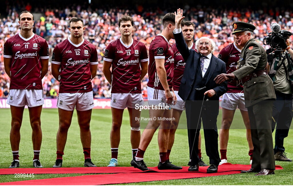 28 July 2024; President of Ireland Michael D Higgins before the GAA Football All-Ireland Senior Championship Final match between Armagh and Galway at Croke Park in Dublin. Photo by Piaras Ó Mídheach/Sportsfile