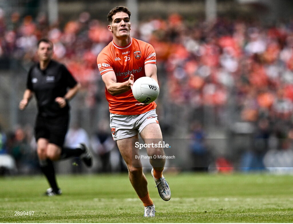 28 July 2024; Jarly Óg Burns of Armagh during the GAA Football All-Ireland Senior Championship Final match between Armagh and Galway at Croke Park in Dublin. Photo by Piaras Ó Mídheach/Sportsfile