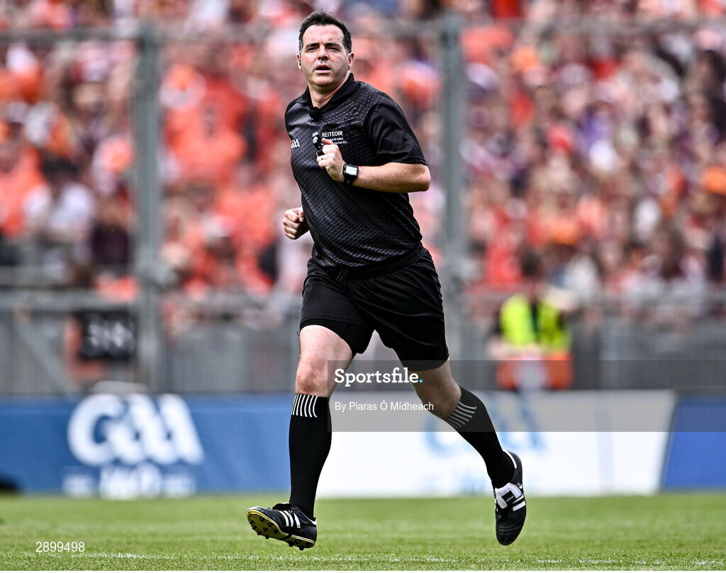28 July 2024; Referee Seán Hurson during the GAA Football All-Ireland Senior Championship Final match between Armagh and Galway at Croke Park in Dublin. Photo by Piaras Ó Mídheach/Sportsfile