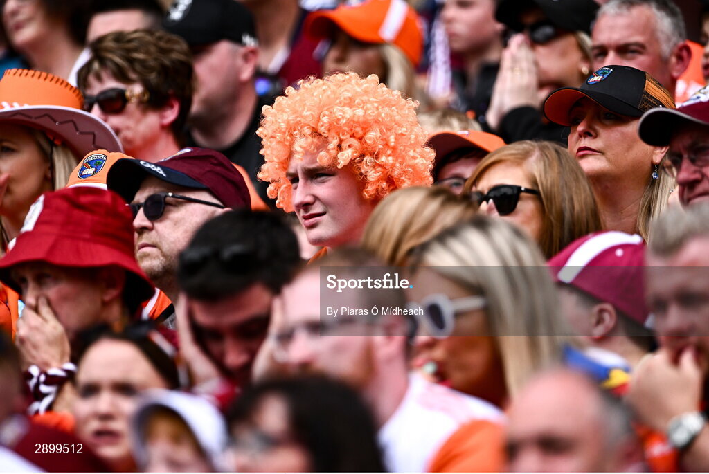 28 July 2024; An Armagh supporter during the GAA Football All-Ireland Senior Championship Final match between Armagh and Galway at Croke Park in Dublin. Photo by Piaras Ó Mídheach/Sportsfile
