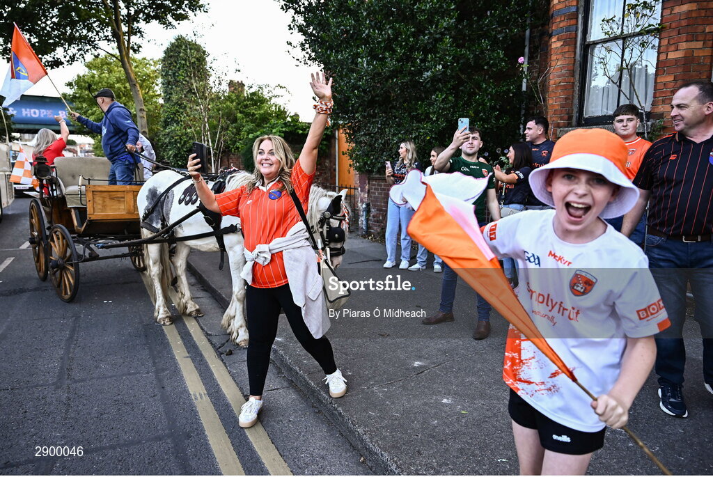 28 July 2024; Armagh supporters wave to the team bus after the GAA Football All-Ireland Senior Championship Final match between Armagh and Galway at Croke Park in Dublin. Photo by Piaras Ó Mídheach/Sportsfile