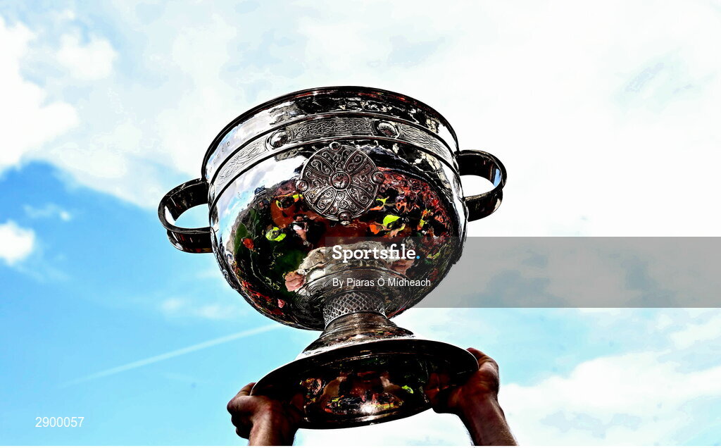 28 July 2024; The Sam Maguire Cup is held aloft during the Armagh celebrations after the GAA Football All-Ireland Senior Championship Final match between Armagh and Galway at Croke Park in Dublin. Photo by Piaras Ó Mídheach/Sportsfile
