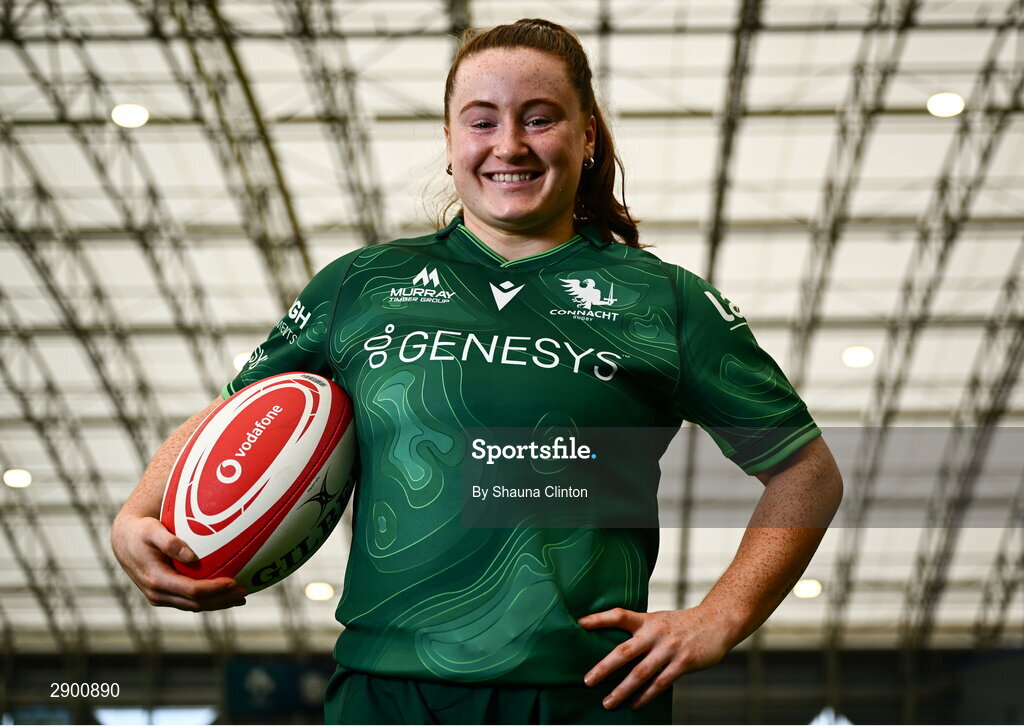 1 August 2024; Méabh Deely of Connacht during the Vodafone Women's Interprovincial launch at the IRFU High Performance Centre on the Sport Ireland Campus in Dublin. Photo by Shauna Clinton/Sportsfile