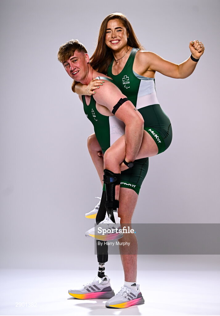 1 August 2024; Team Ireland complete as athletes for Para Equestrian, Para Triathlon and Para Rowing are unveiled at the RDS in Dublin. Paralympics Ireland athletes will compete at Paris 2024 this summer from August 28 - September 8 #TheNextLevel | #Paris2024 | #TeamIreland. Pictured are rowers Katie Whelan and Tiarnán O'Donnell. Photo by Harry Murphy/Sportsflie