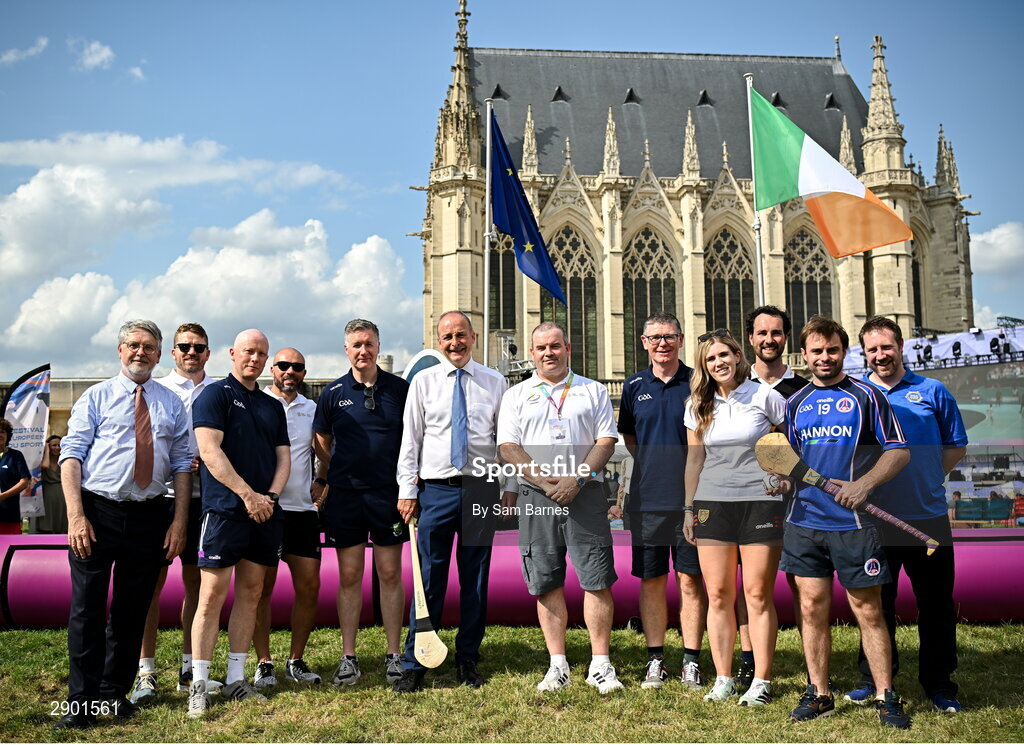 1 August 2024; Tánaiste, Minister for Foreign Affairs and Minister for Defence, Micheál Martin, TD, centre, with attendees at Fesport Festival at the Cháteau de Vincennes during the 2024 Paris Summer Olympic Games in Paris, France. Photo by Sam Barnes/Sportsfile
