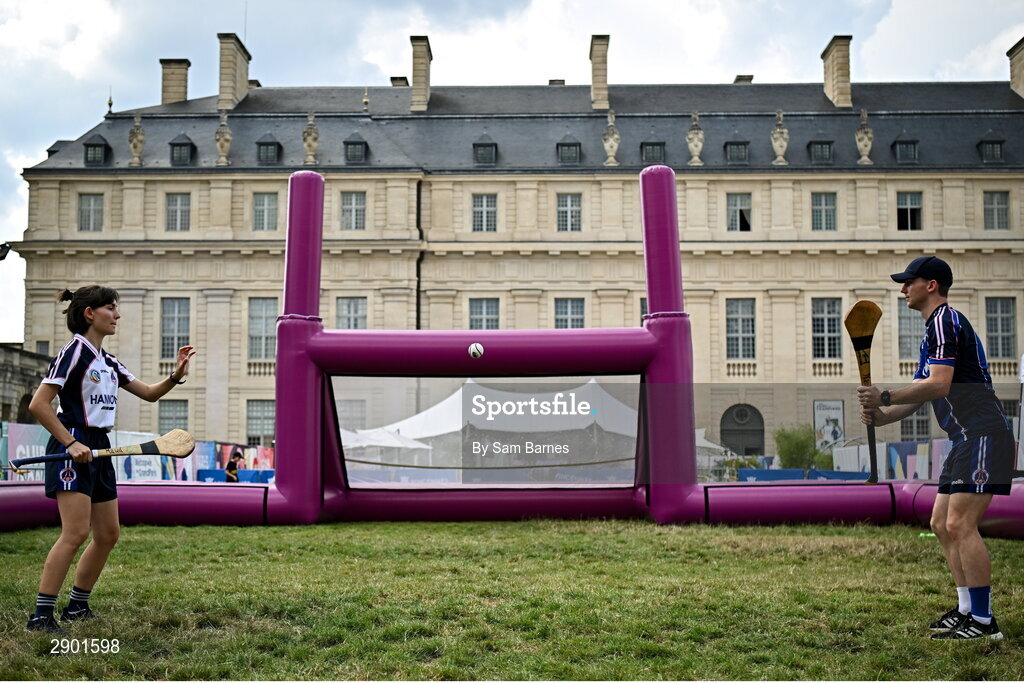 1 August 2024; Maud Pradella and Naoise Greene of Paris Gaels in attendance at Fesport Festival at the Cháteau de Vincennes during the 2024 Paris Summer Olympic Games in Paris, France. Photo by Sam Barnes/Sportsfile