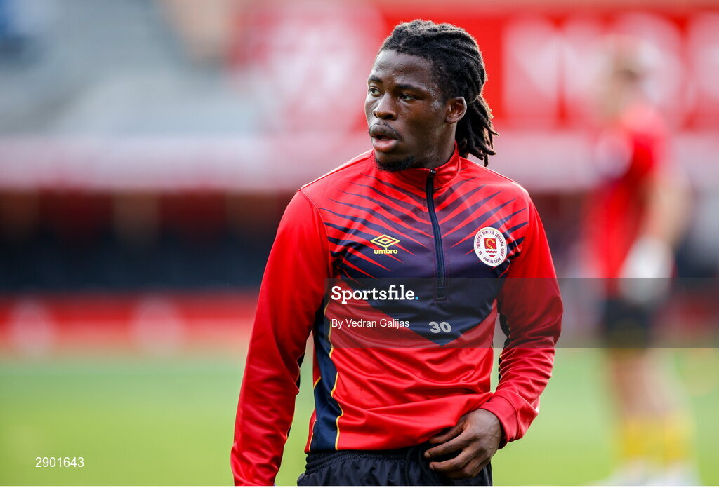 1 August 2024; Al-Amin Kazeem of St Patrick's Athletic warms up before the UEFA Conference League second qualifying round second leg match between FC Vaduz and St Patrick's Athletic at Rheinpark Stadion in Vaduz, Liechtenstein. Photo by Vedran Galijas/Sportsfile