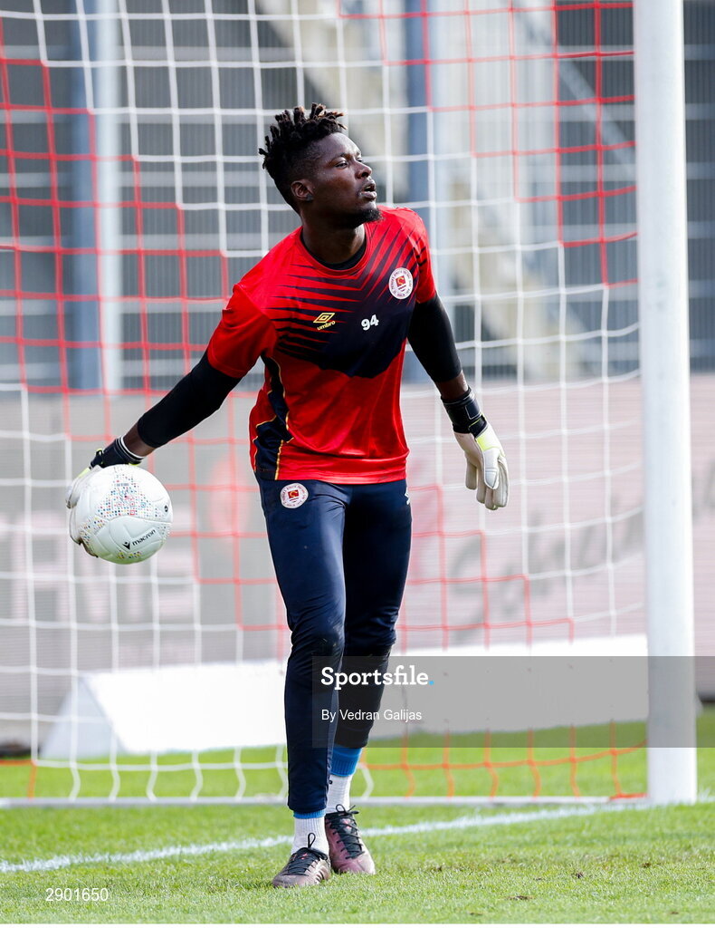 1 August 2024; Joseph Anang of St Patrick's Athletic warms up before the UEFA Conference League second qualifying round second leg match between FC Vaduz and St Patrick's Athletic at Rheinpark Stadion in Vaduz, Liechtenstein. Photo by Vedran Galijas/Sportsfile