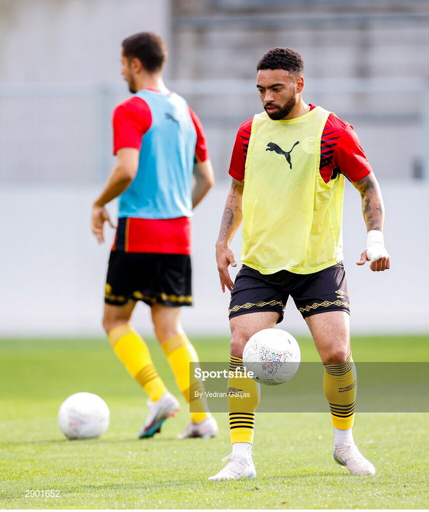 1 August 2024; Jake Mulraney of St Patrick's Athletic warms up before the UEFA Conference League second qualifying round second leg match between FC Vaduz and St Patrick's Athletic at Rheinpark Stadion in Vaduz, Liechtenstein. Photo by Vedran Galijas/Sportsfile