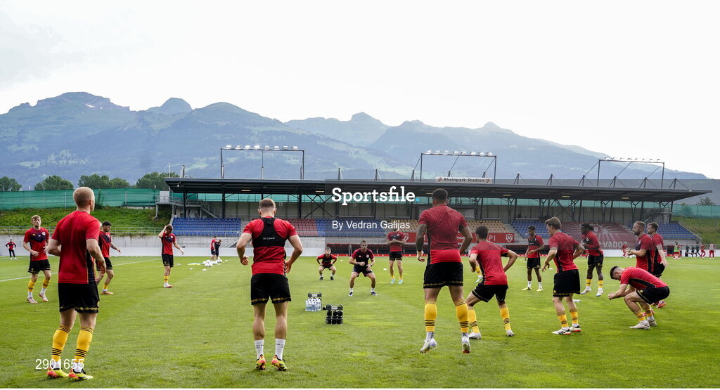 1 August 2024; St Patrick's Athletic players warm-up before the UEFA Conference League second qualifying round second leg match between FC Vaduz and St Patrick's Athletic at Rheinpark Stadion in Vaduz, Liechtenstein. Photo by Vedran Galijas/Sportsfile