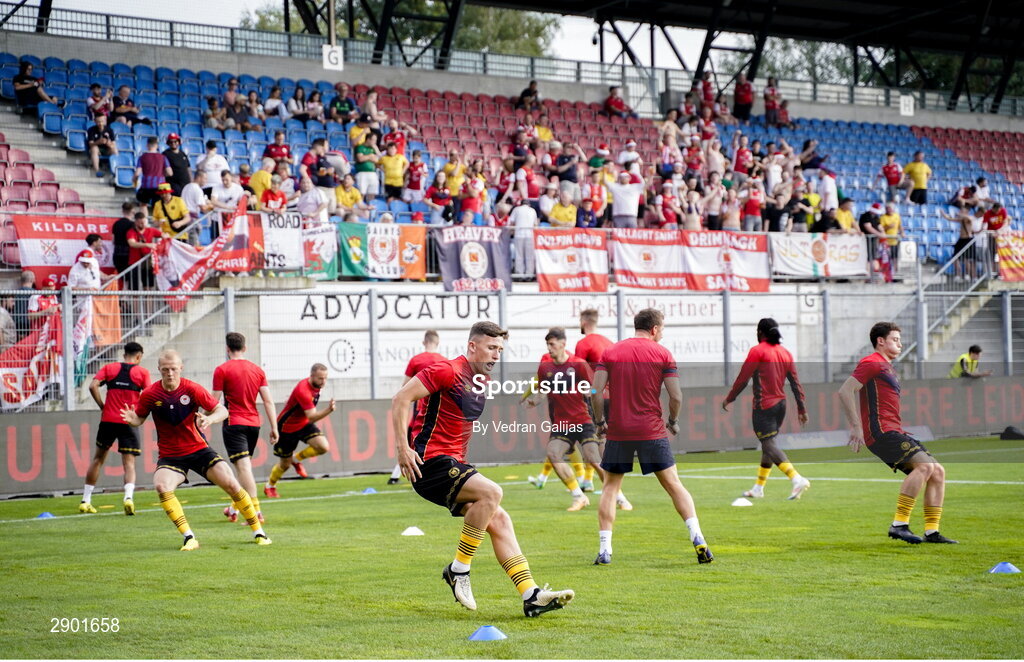 1 August 2024; St Patrick's Athletic players, including Joe Redmond, centre, warm-up before the UEFA Conference League second qualifying round second leg match between FC Vaduz and St Patrick's Athletic at Rheinpark Stadion in Vaduz, Liechtenstein. Photo by Vedran Galijas/Sportsfile