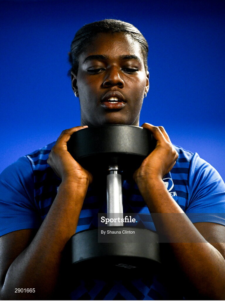 30 July 2024; Alma Atagamen during Leinster rugby women's season launch at Energia Park in Dublin. Photo by Shauna Clinton/Sportsfile