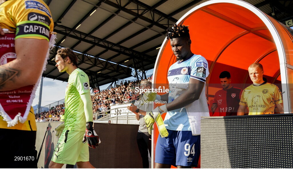 1 August 2024; St Patrick's Athletic goalkeeper Joseph Anang makes his way out ono the pitch before the UEFA Conference League second qualifying round second leg match between FC Vaduz and St Patrick's Athletic at Rheinpark Stadion in Vaduz, Liechtenstein. Photo by Vedran Galijas/Sportsfile