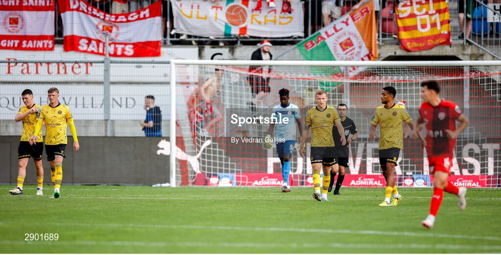 1 August 2024; St Patrick's Athletic players react after conceding their side's first goal, scored by Fabrizio Cavegn, not pictured, during the UEFA Conference League second qualifying round second leg match between FC Vaduz and St Patrick's Athletic at Rheinpark Stadion in Vaduz, Liechtenstein. Photo by Vedran Galijas/Sportsfile