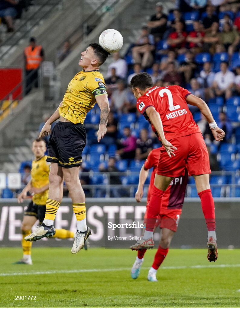 1 August 2024; Joe Redmond of St Patrick's Athletic in action against Jenthe Mertens of FC Vaduz during the UEFA Conference League second qualifying round second leg match between FC Vaduz and St Patrick's Athletic at Rheinpark Stadion in Vaduz, Liechtenstein. Photo by Vedran Galijas/Sportsfile
