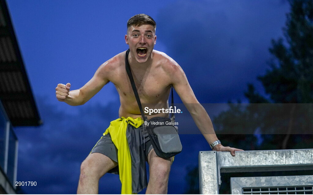 1 August 2024; A St Patrick's Athletic supporters reacts after Romal Palmer scores their side's second goal during the UEFA Conference League second qualifying round second leg match between FC Vaduz and St Patrick's Athletic at Rheinpark Stadion in Vaduz, Liechtenstein. Photo by Vedran Galijas/Sportsfile