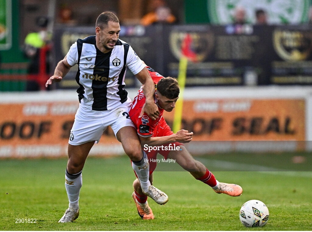 1 August 2024; Will Jarvis of Shelbourne in action against Nikola Katic of Zurich during the UEFA Conference League second qualifying round second leg match between Shelbourne and FC Zurich at Tolka Park in Dublin. Photo by Harry Murphy/Sportsfile