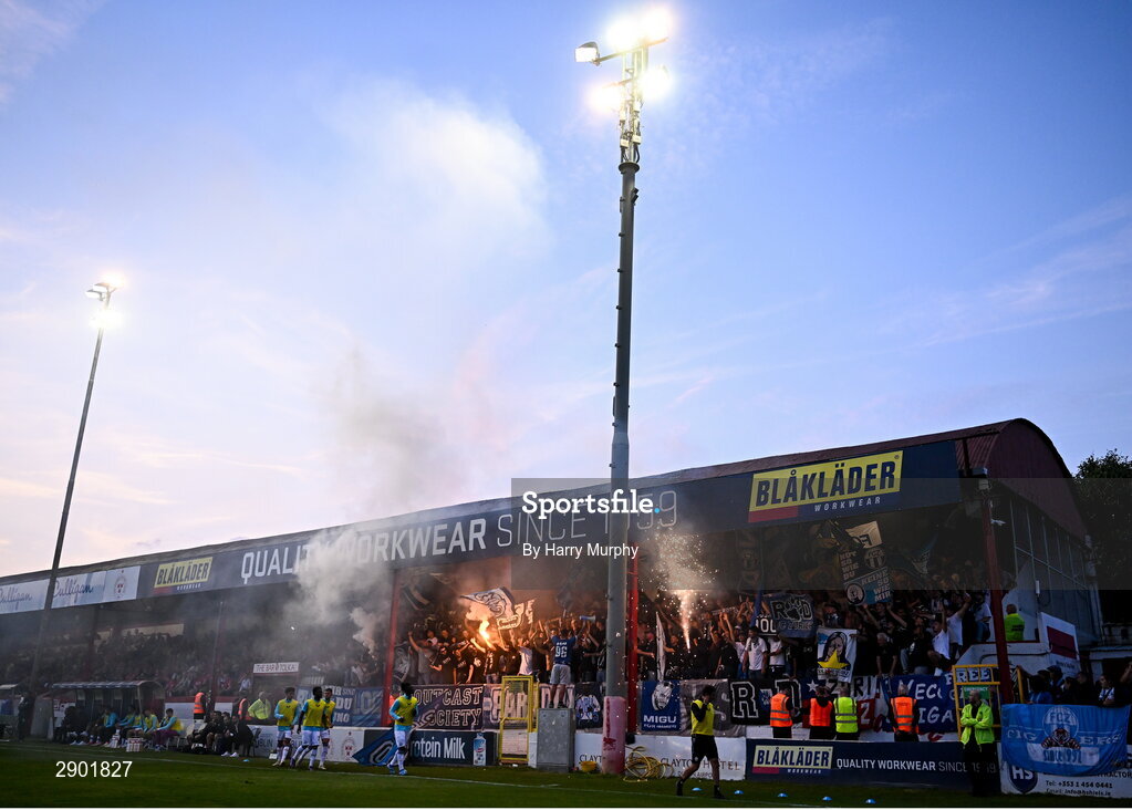 1 August 2024; Zurich supporters during the UEFA Conference League second qualifying round second leg match between Shelbourne and FC Zurich at Tolka Park in Dublin. Photo by Harry Murphy/Sportsfile