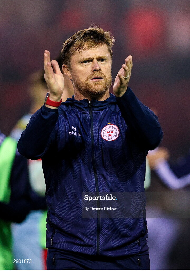 1 August 2024; Shelbourne manager Damien Duff after the UEFA Conference League second qualifying round second leg match between Shelbourne and FC Zurich at Tolka Park in Dublin. Photo by Thomas Flinkow/Sportsfile