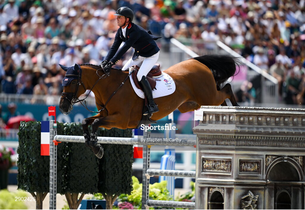 2 August 2024; Ben Maher of Team Great Britain riding Dallas Vegas Batilly during the jumping team final at the Château de Versailles during the 2024 Paris Summer Olympic Games in Paris, France. Photo by Stephen McCarthy/Sportsfile