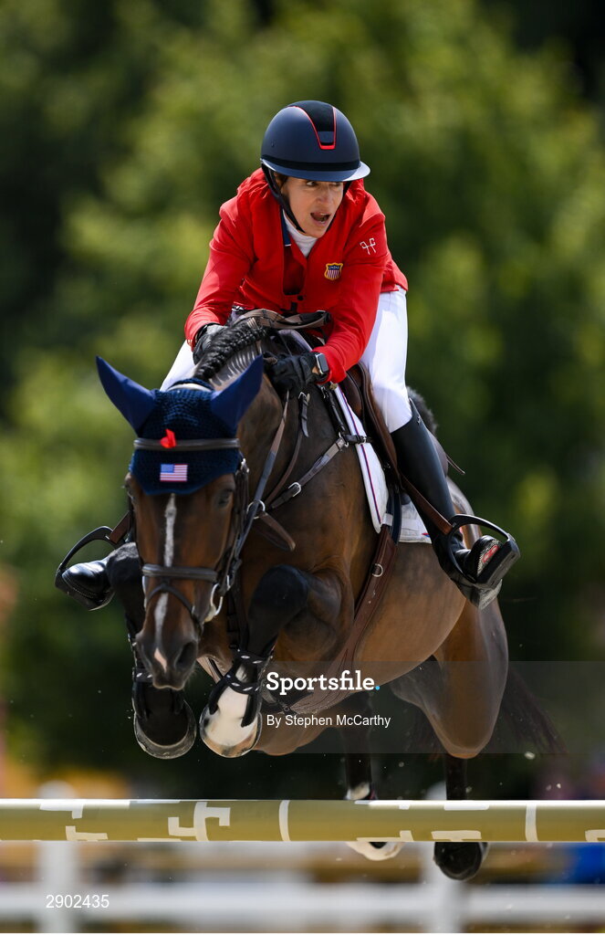 2 August 2024; Laura Kraut of Team USA riding Baloutinue during the jumping team final at the Château de Versailles during the 2024 Paris Summer Olympic Games in Paris, France. Photo by Stephen McCarthy/Sportsfile