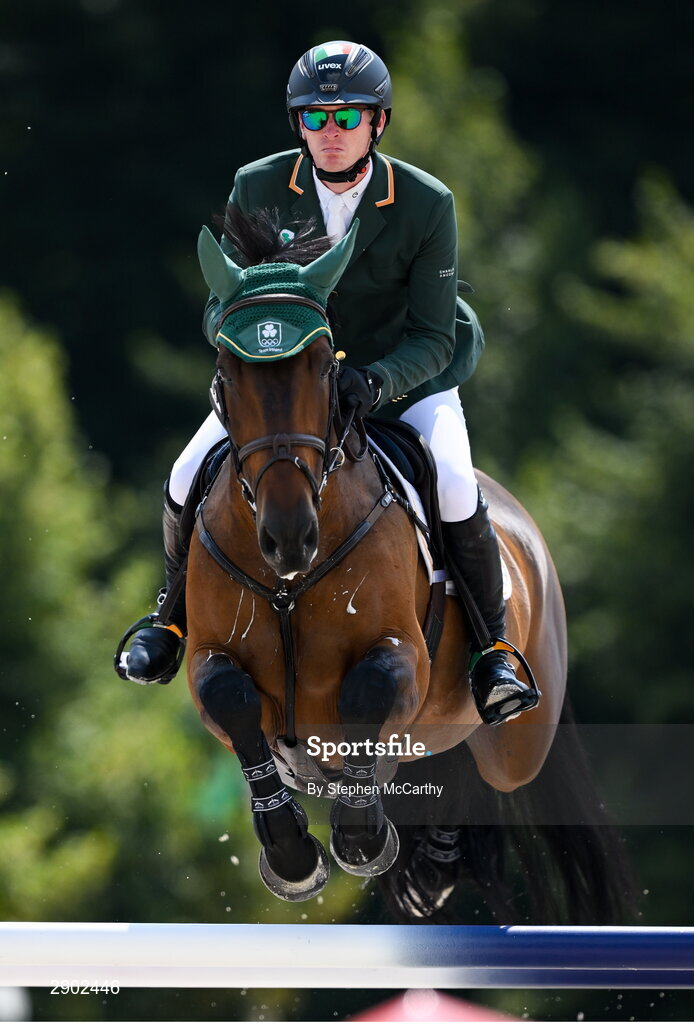 2 August 2024; Daniel Coyle of Team Ireland, on Legacy, during the jumping team final at the Château de Versailles during the 2024 Paris Summer Olympic Games in Paris, France. Photo by Stephen McCarthy/Sportsfile
