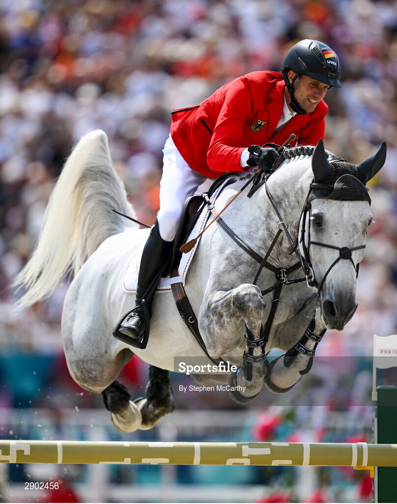 2 August 2024; Christian Kukuk of Team Germany, on Checker 47, during the jumping team final at the Château de Versailles during the 2024 Paris Summer Olympic Games in Paris, France. Photo by Stephen McCarthy/Sportsfile