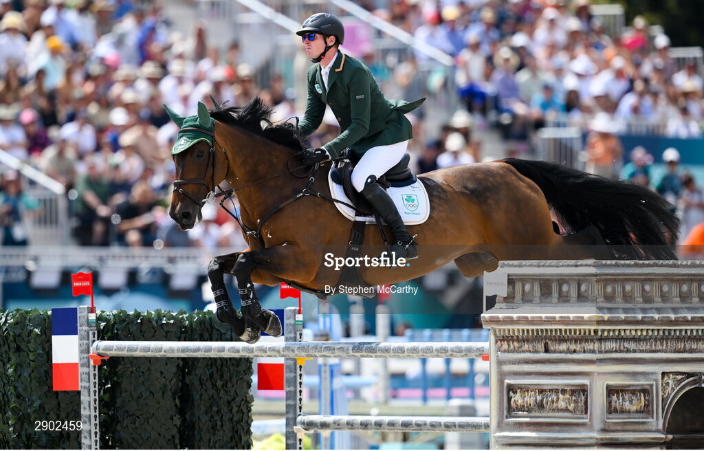 2 August 2024; Daniel Coyle of Team Ireland, on Legacy, during the jumping team final at the Château de Versailles during the 2024 Paris Summer Olympic Games in Paris, France. Photo by Stephen McCarthy/Sportsfile