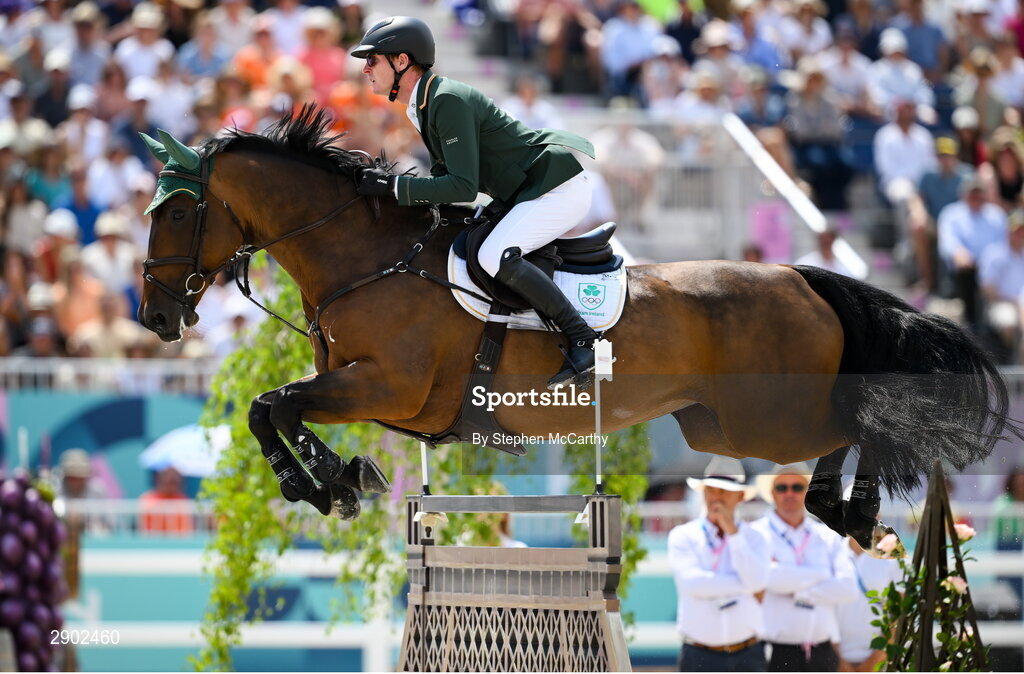 2 August 2024; Daniel Coyle of Team Ireland, on Legacy, during the jumping team final at the Château de Versailles during the 2024 Paris Summer Olympic Games in Paris, France. Photo by Stephen McCarthy/Sportsfile