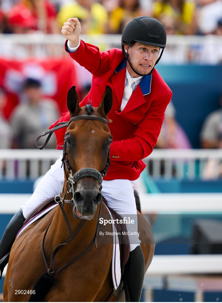 2 August 2024; Karl Cook of Team United States, on Caracole De La Roque, during the jumping team final at the Château de Versailles during the 2024 Paris Summer Olympic Games in Paris, France. Photo by Stephen McCarthy/Sportsfile
