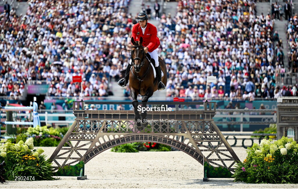 2 August 2024; Richard Vogel of Team Germany, on United Touch S, during the jumping team final at the Château de Versailles during the 2024 Paris Summer Olympic Games in Paris, France. Photo by Stephen McCarthy/Sportsfile