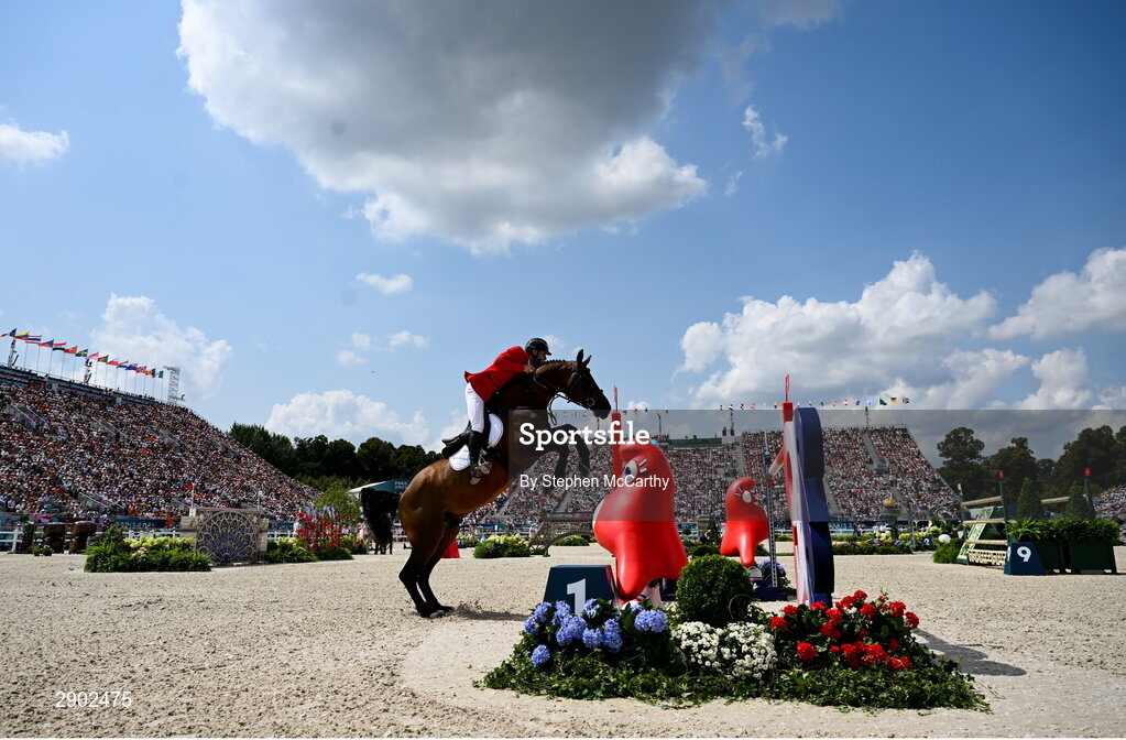 2 August 2024; Richard Vogel of Team Germany, on United Touch S, during the jumping team final at the Château de Versailles during the 2024 Paris Summer Olympic Games in Paris, France. Photo by Stephen McCarthy/Sportsfile