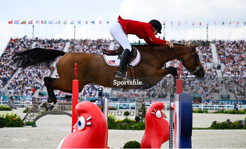 2 August 2024; Karl Cook of Team United States, on Caracole De La Roque, during the jumping team final at the Château de Versailles during the 2024 Paris Summer Olympic Games in Paris, France. Photo by Stephen McCarthy/Sportsfile