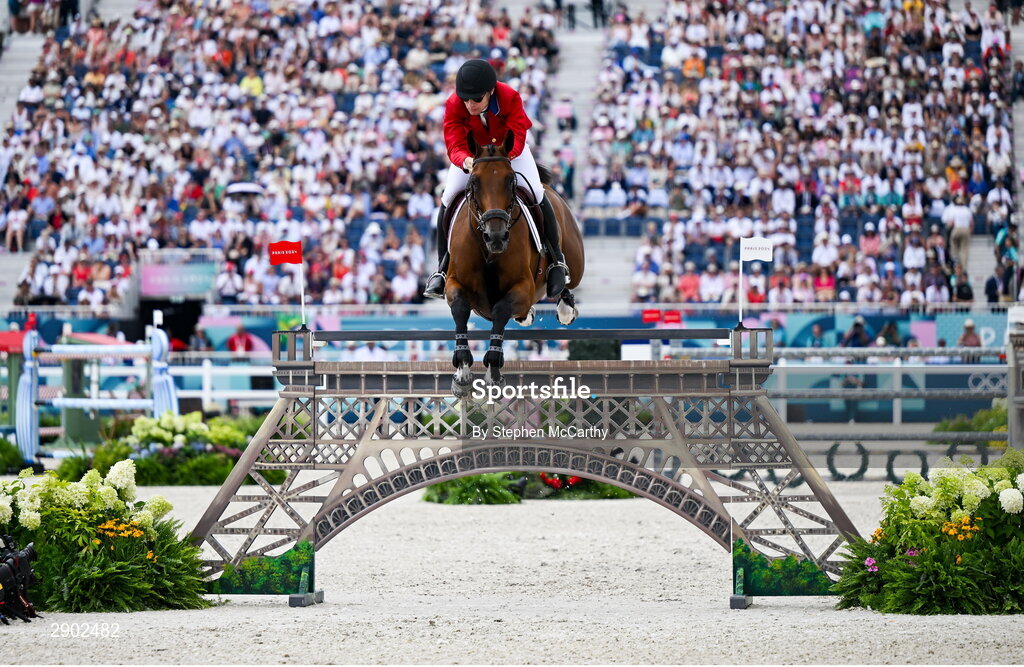 2 August 2024; Karl Cook of Team United States, on Caracole De La Roque, during the jumping team final at the Château de Versailles during the 2024 Paris Summer Olympic Games in Paris, France. Photo by Stephen McCarthy/Sportsfile