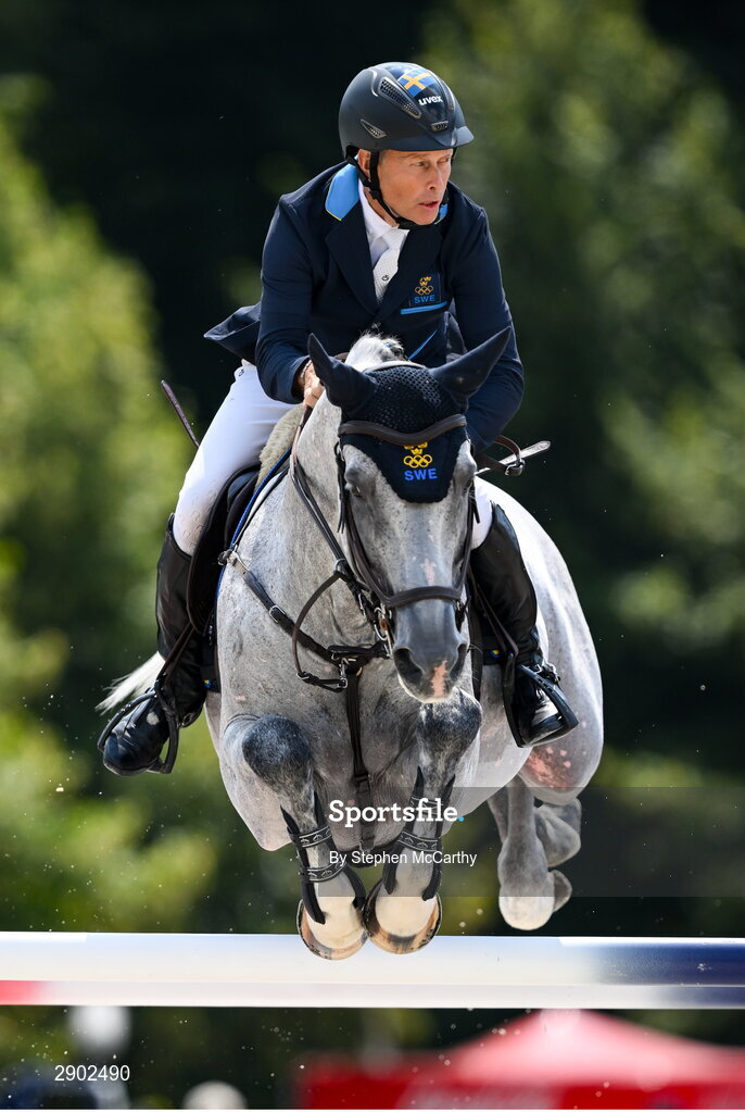 2 August 2024; Rolf-Goran Bengtsson of Team Sweden, on Zuccero HV, during the jumping team final at the Château de Versailles during the 2024 Paris Summer Olympic Games in Paris, France. Photo by Stephen McCarthy/Sportsfile