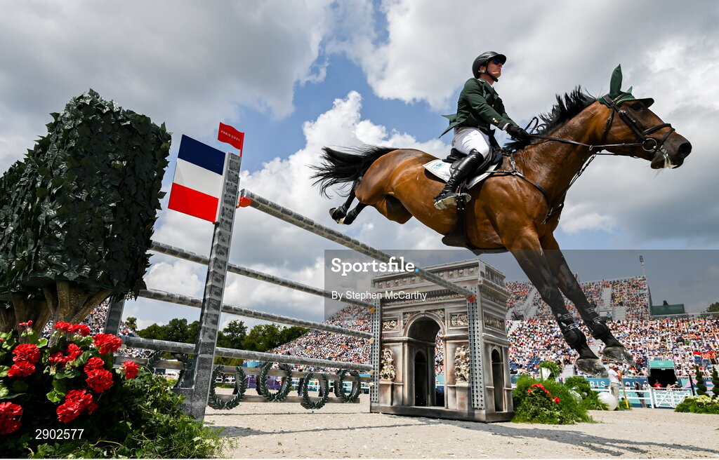 2 August 2024; Daniel Coyle of Team Ireland, on Legacy, during the jumping team final at the Château de Versailles during the 2024 Paris Summer Olympic Games in Paris, France. Photo by Stephen McCarthy/Sportsfile