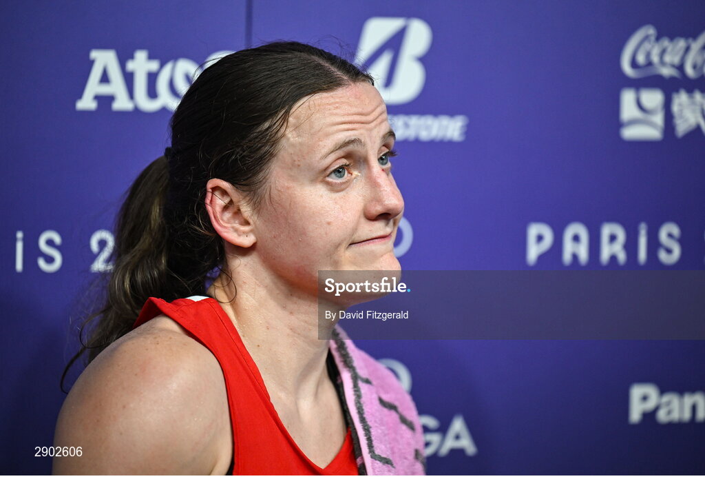 2 August 2024; Michaela Walsh of Team Ireland after her loss to Svetlana Kamenova Staneva of Team Bulgaria in their women's 57Kg round of 16 bout at the North Paris Arena during the 2024 Paris Summer Olympic Games in Paris, France. Photo by David Fitzgerald/Sportsfile