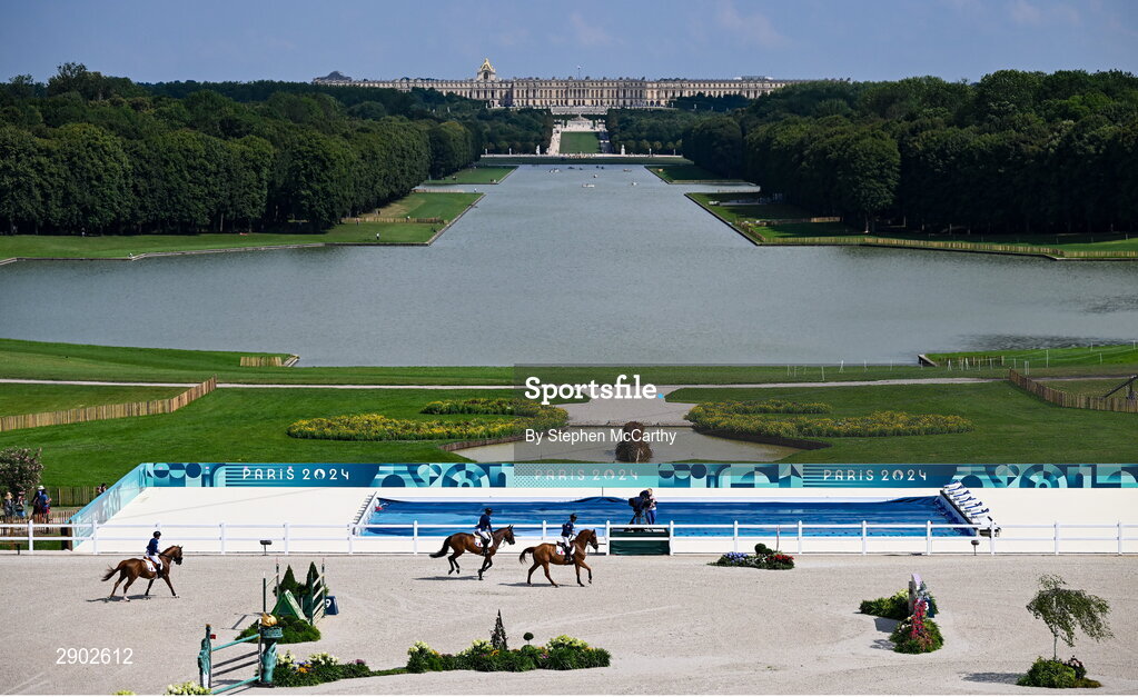 2 August 2024; Team France during the jumping team final at the Château de Versailles during the 2024 Paris Summer Olympic Games in Paris, France. Photo by Stephen McCarthy/Sportsfile