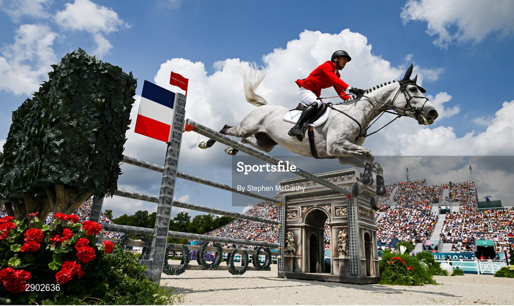 2 August 2024; Christian Kukuk of Team Germany, on Checker 47, during the jumping team final at the Château de Versailles during the 2024 Paris Summer Olympic Games in Paris, France. Photo by Stephen McCarthy/Sportsfile