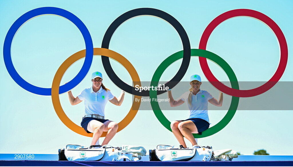 6 August 2024; Team Ireland golfers Leona Maguire, left, and Stephanie Meadow during a practice round at Le Golf National during the 2024 Paris Summer Olympic Games in Paris, France. Photo by David Fitzgerald/Sportsfile