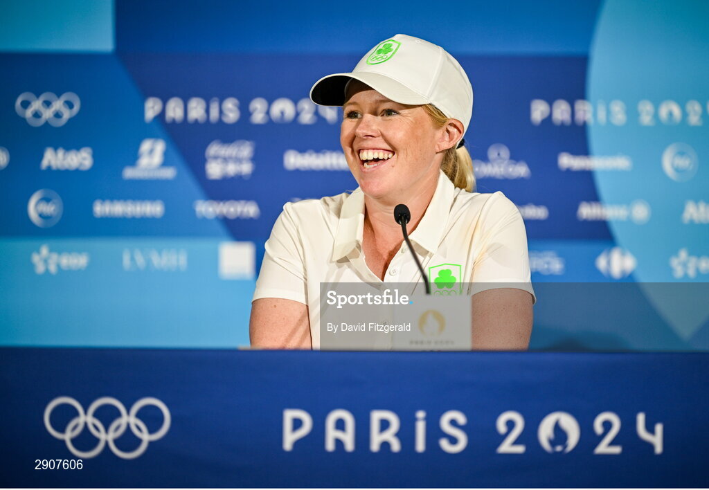 6 August 2024; Stephanie Meadow of Team Ireland during a press conference following a practice round at Le Golf National during the 2024 Paris Summer Olympic Games in Paris, France. Photo by David Fitzgerald/Sportsfile
